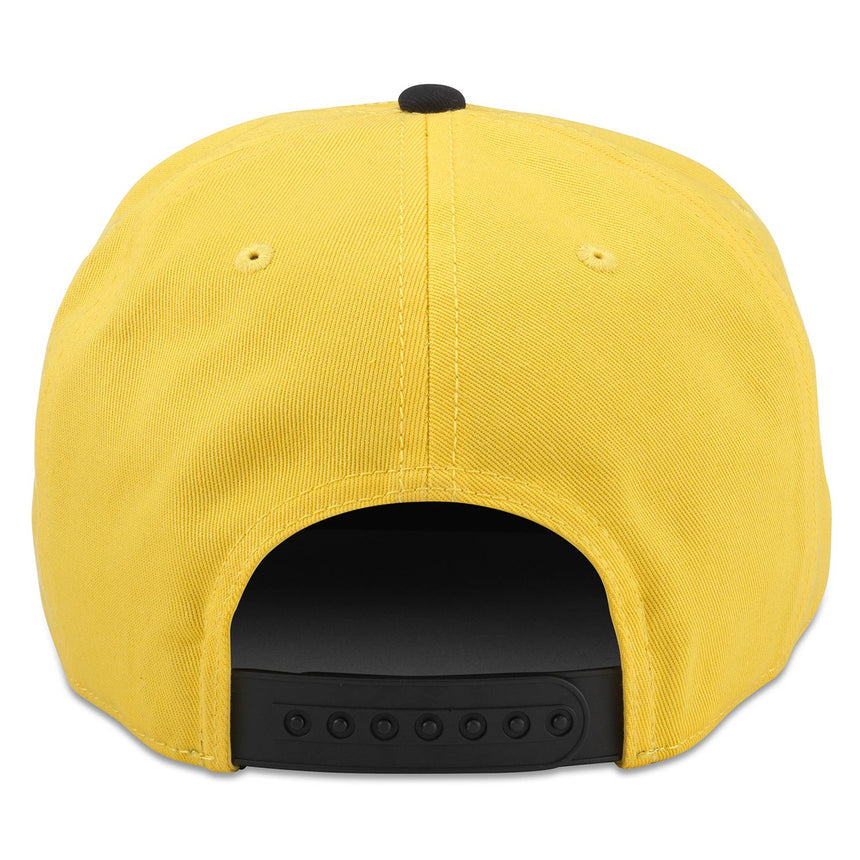 Washed Twill 5-panel with soft structured crown and slight curved visor. Braided nylon cord across seam and plastic snap closure. Front logo is merrowed twill patch or embroidery.