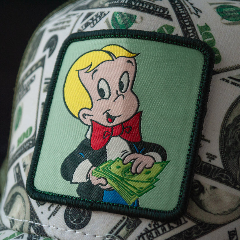 💸 Woven patch of Richie Rich mid-stack against a clean mint backdrop