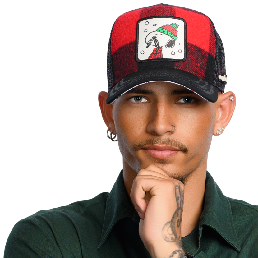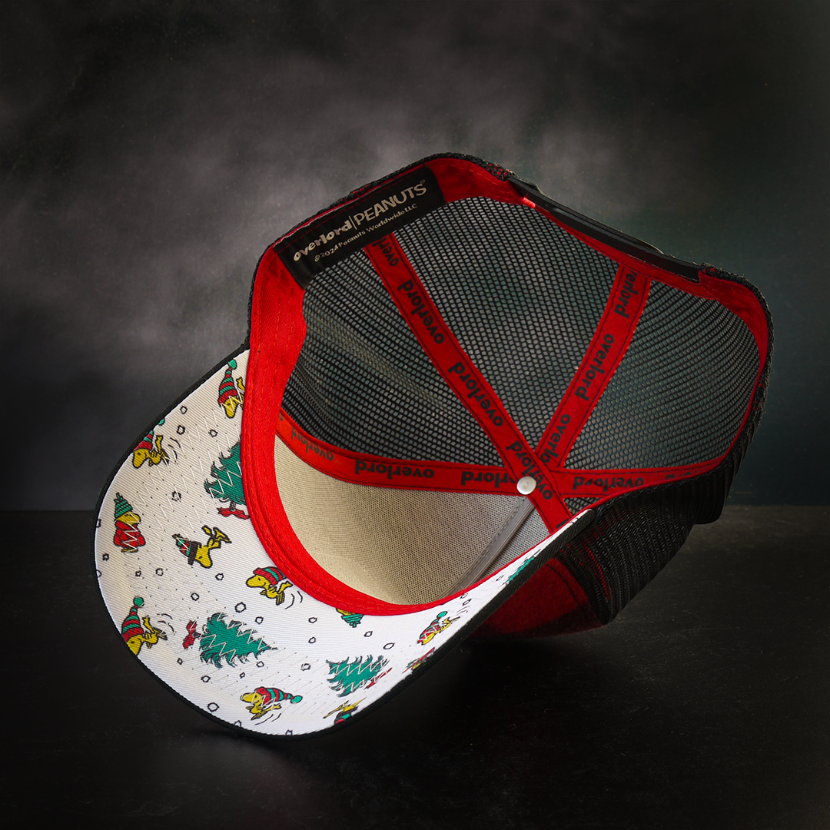 🐾 Ever wonder what holiday peace looks like? Try Snoopy in a flannel, catching snowflakes with his eyes closed. The Overlord x Peanuts Lumberjack Snoopy Trucker Cap is a cozy holiday nap wrapped in buffalo plaid. The crown’s a warm red-and-black flannel with black mesh and a jet-black brim, stitched up like winter thermals. The woven patch keeps it chill—Snoopy in a beanie, mid-snowfall zen. Underneath? A blizzard of Woodstock characters, snowballs, and cheer galore.