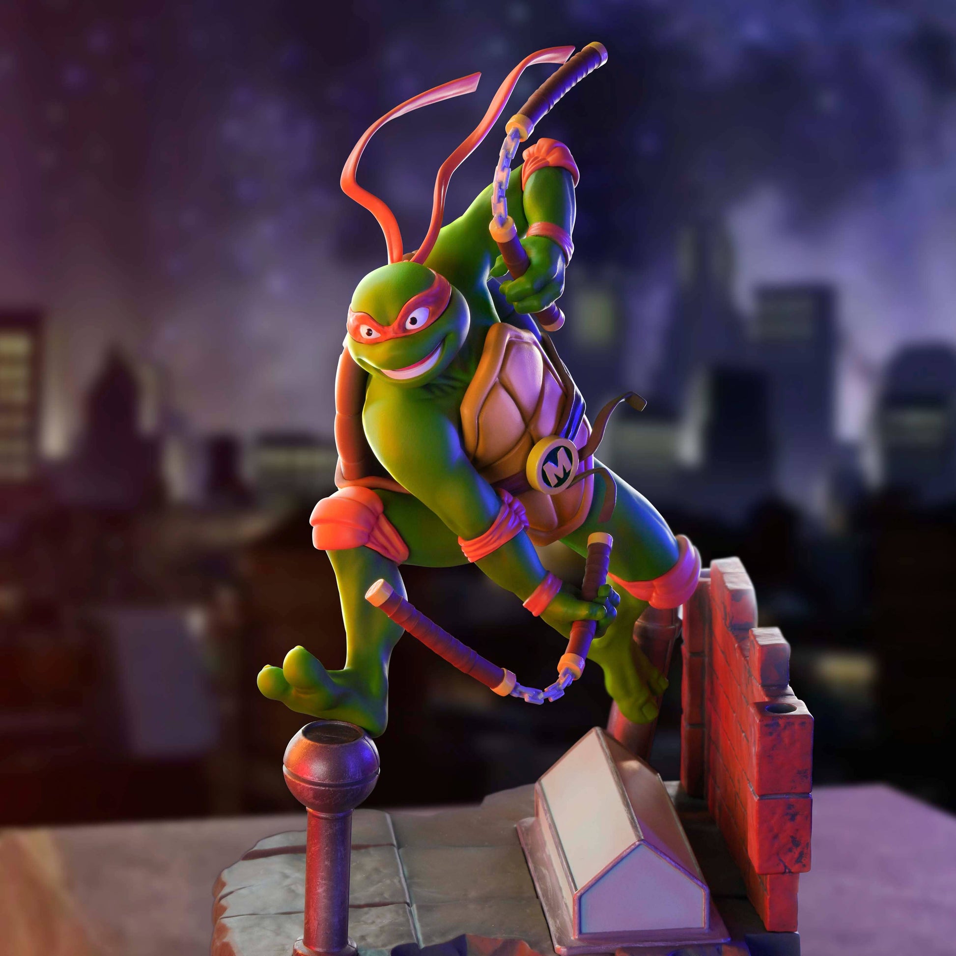 DESIGN - Features a detailed and accurate representation of Michelangelo, one of the iconic Teenage Mutant Ninja Turtles, in a dynamic and action-packed pose. The design is inspired by the cartoon series, bringing a nostalgic and authentic feel to the collectible.