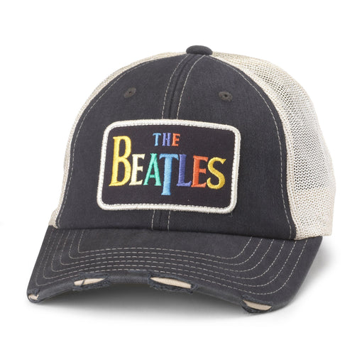 Pigment washed cotton twill cap with soft structured crown, soft mesh sides and back. Plastic snap back strap. Front logo is washed twill merrowed patch with embroidery and matte print details.
