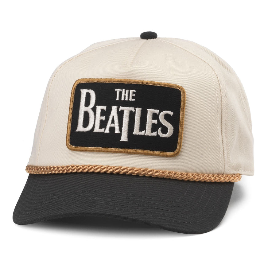 Washed Twill 5-panel with soft structured crown and slight curved visor. Braided nylon cord across seam and plastic snap closure. Front logo is merrowed twill patch or embroidery.