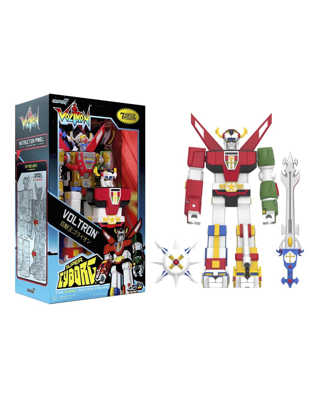 Robeasts, beware! Voltron is back yet again, this time in Super Cyborg form! At 11” tall, this Full Color Voltron Super Cyborg figure is inspired by the ‘80s animated series and features twelve removable x-ray panels that reveal the inner workings of the giant super robot. With accurate sculpting and proportions throughout, premium paint detail, and sword and shield accessories, this Full Color Voltron Super Cyborg is ready to defend your collection from the forces of galactic evil!